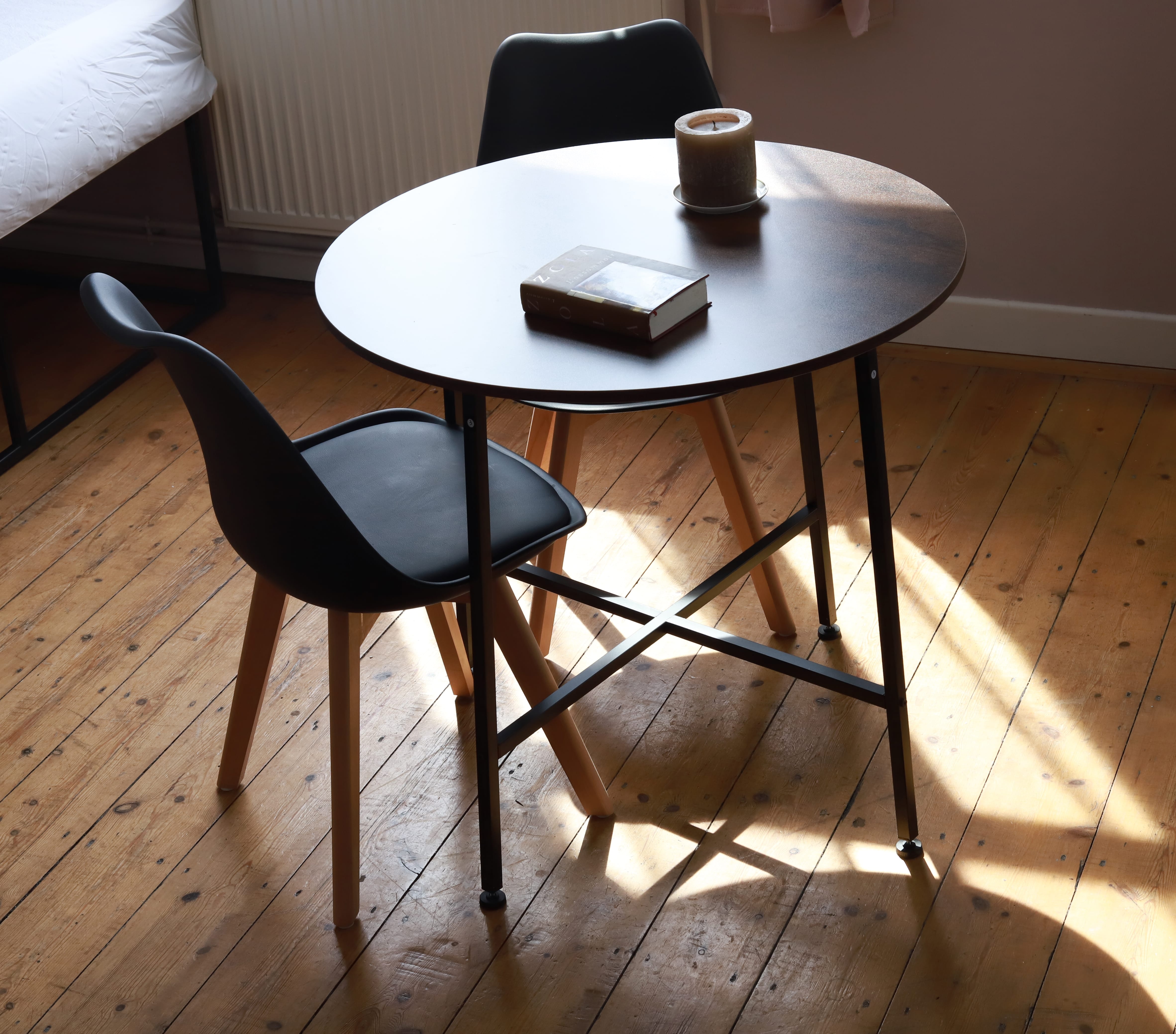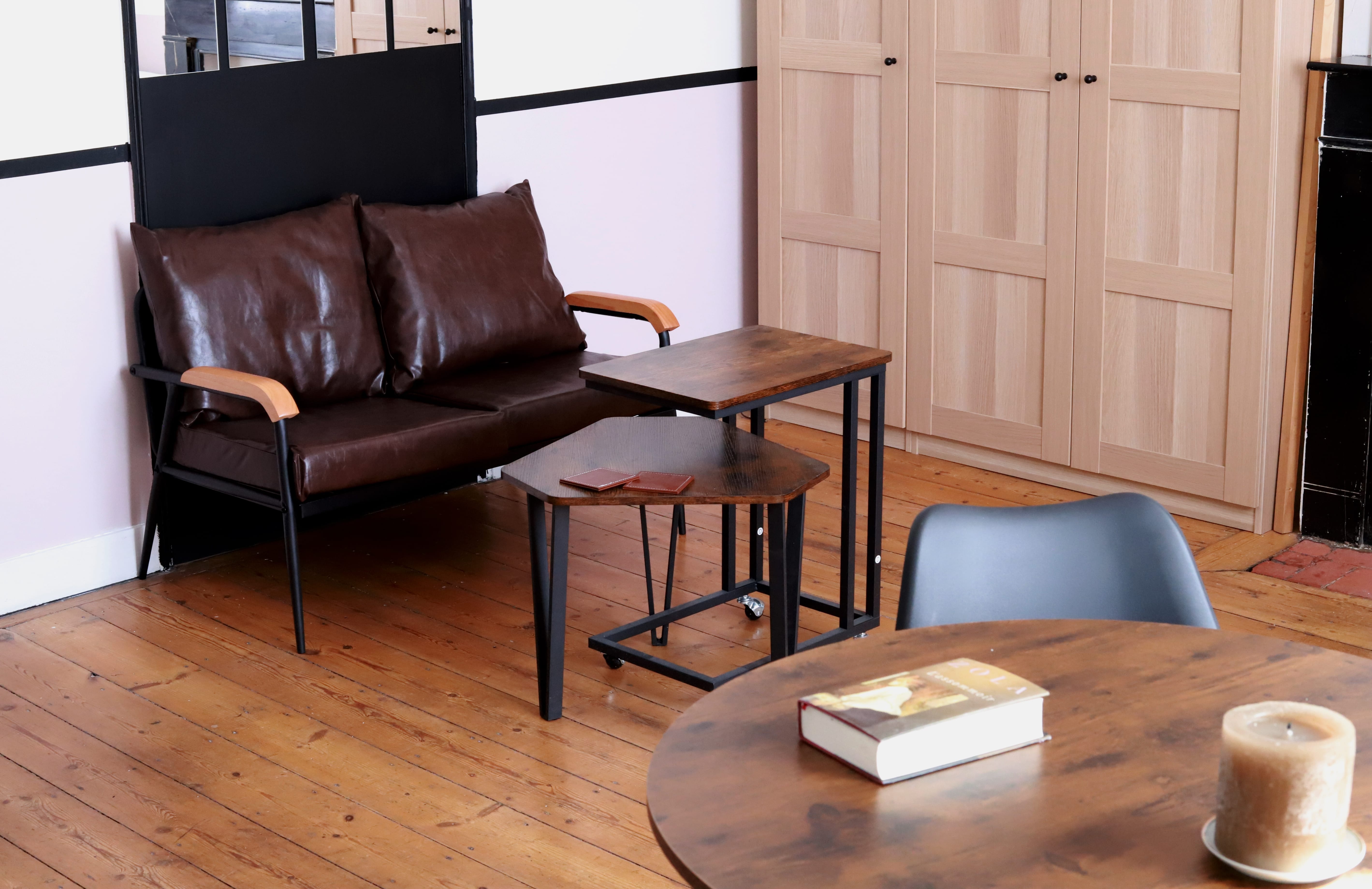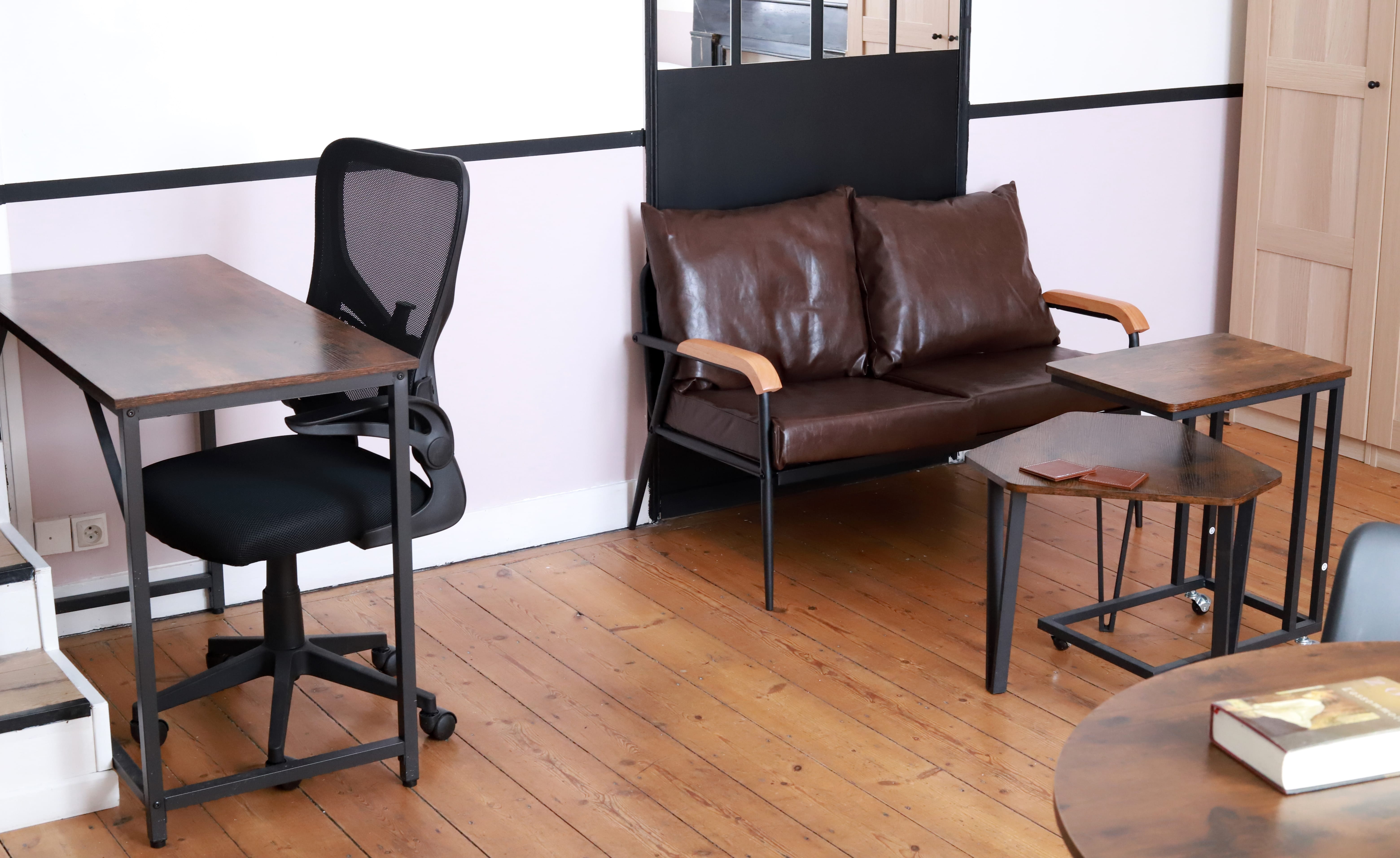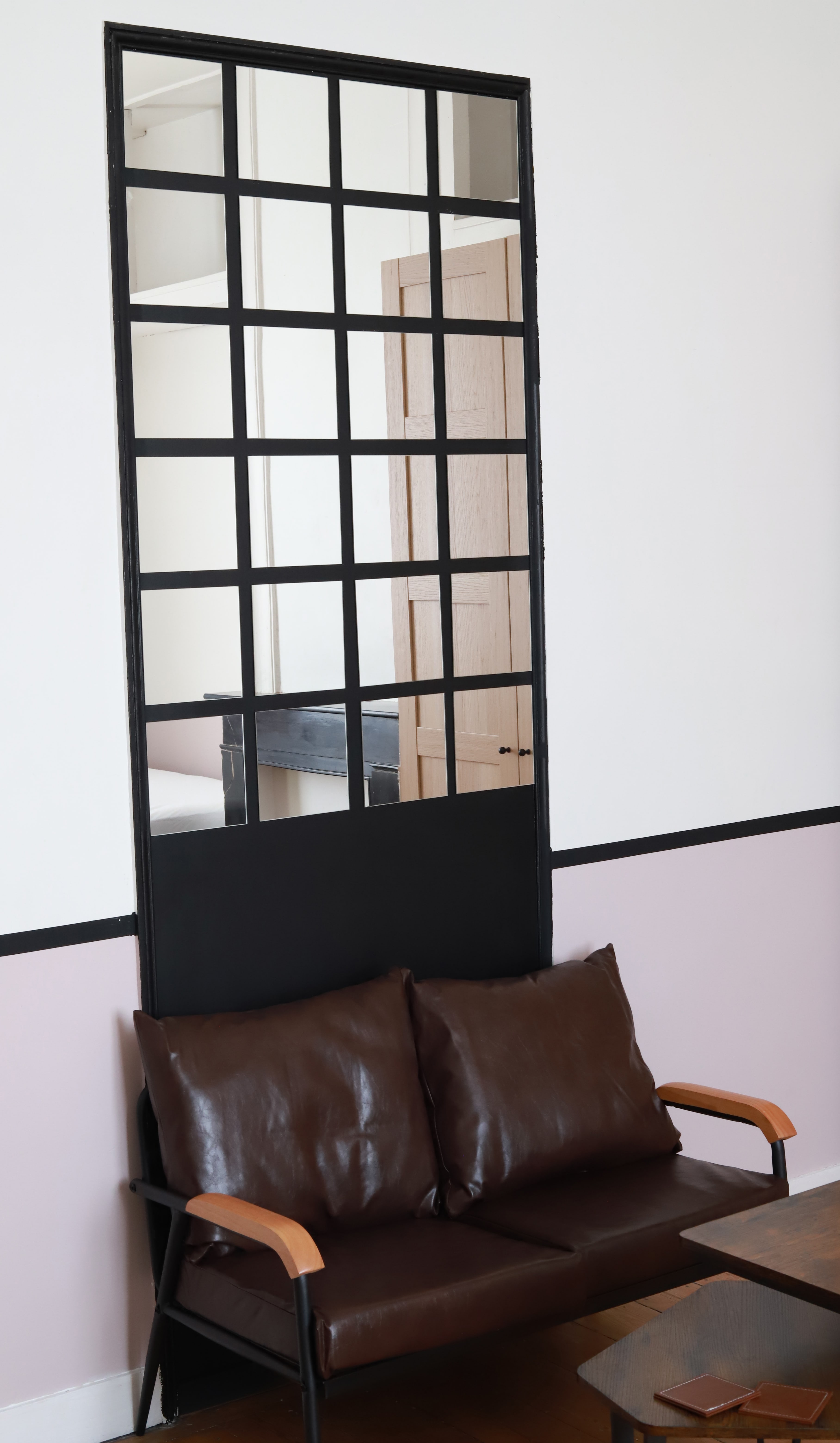 La chambre se trouve au 1er étage sur rue. Elle est entièrement équipée et décorée en style industriel. Elle dispose d'une salle de douche privative attenante qui se compose d'un lavabo et d'une douche